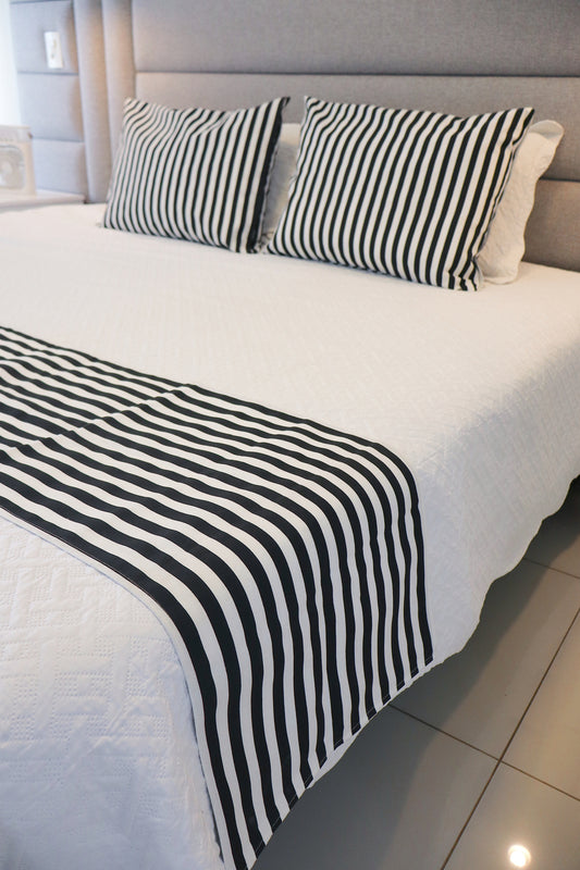 Kit Peseira + 2 Fronhas em Tecido Belize Listra Fina Preto e Branco