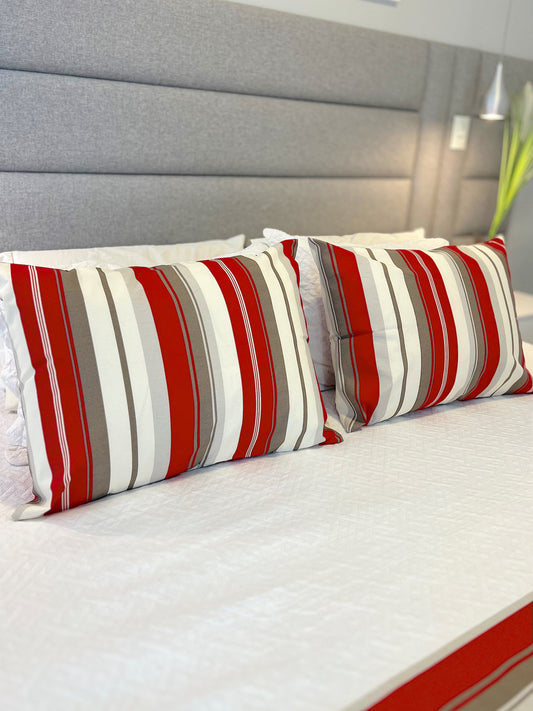 Kit Peseira + 2 Fronhas em Tecido Belize Listrado Vermelho