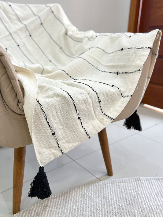 Manta para Sofá / Peseira Pompom Boho Preta 1,20mx1,80m