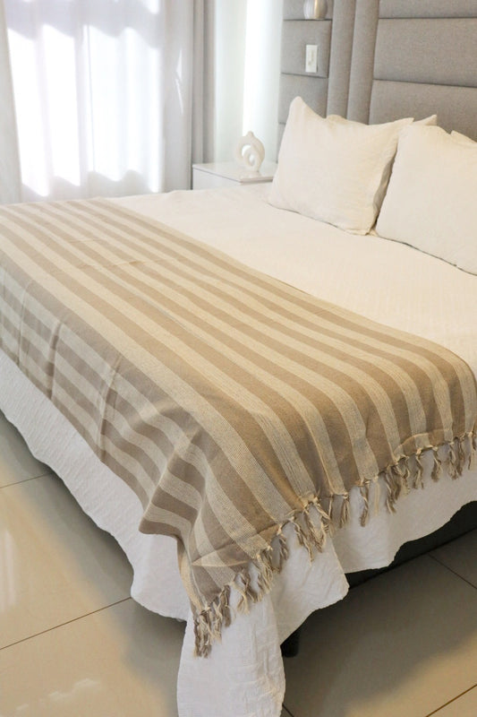 Peseira para Cama Algodão Listrada Bege 1,80x2,20m