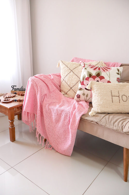 Manta para Sofá/Peseira em Chenille Rosa 1,20mx1,80m