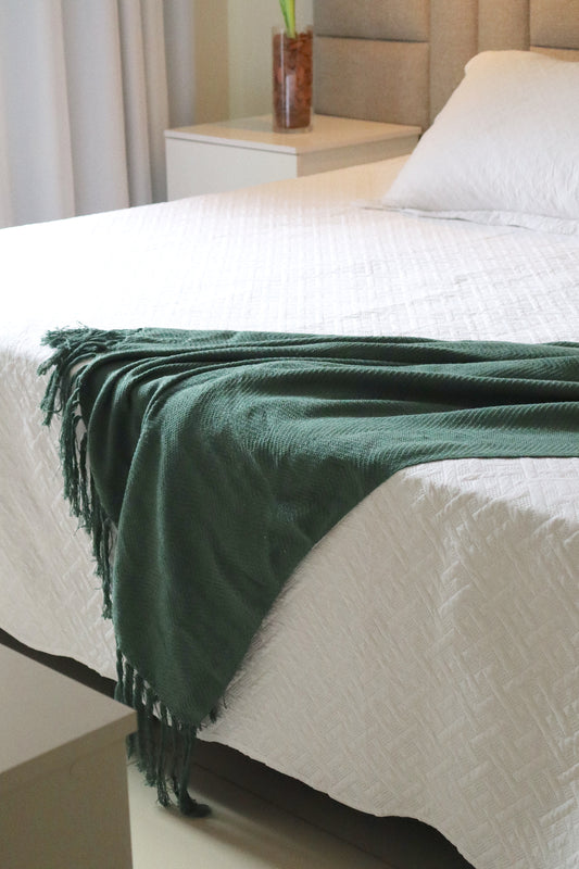 Manta para Sofá / Peseira Escama Boho Verde Musgo 1,20mx1,80m