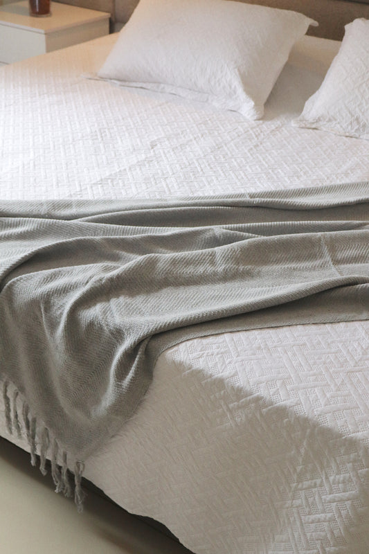 Manta para Sofá / Peseira Escama Boho Cinza Claro 1,20mx1,80m