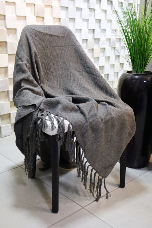Manta para Sofá / Peseira Escama Boho Cinza Escuro 1,20mx1,80m