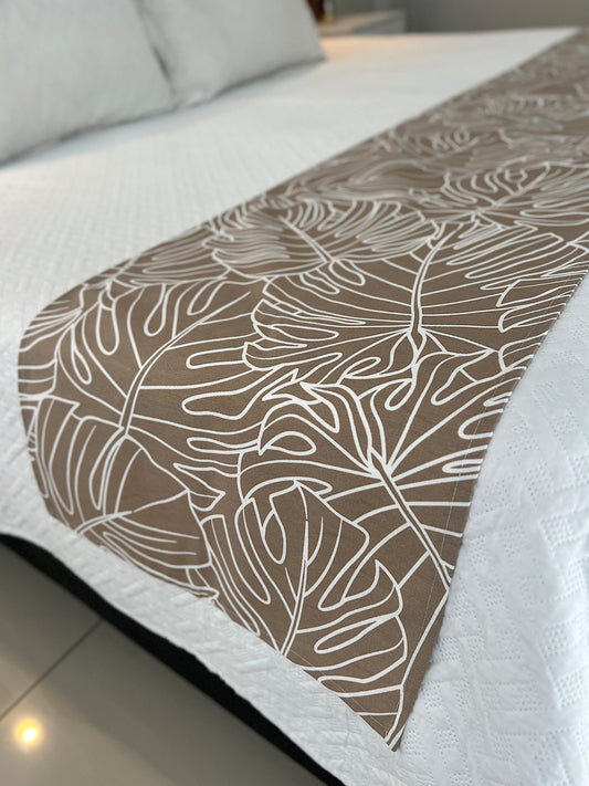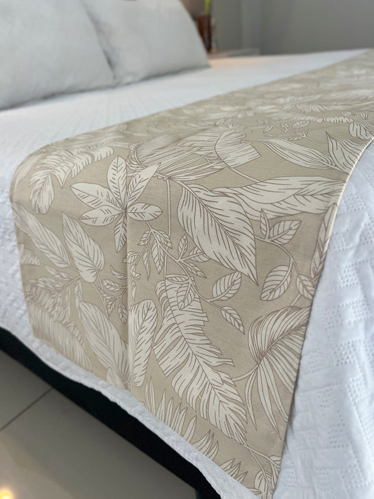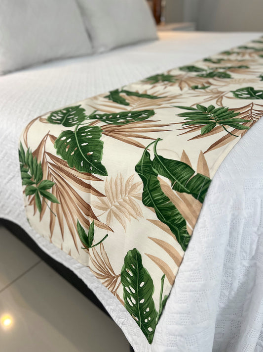 Peseira em Tecido Belize Folhas Costela de Adão Bege