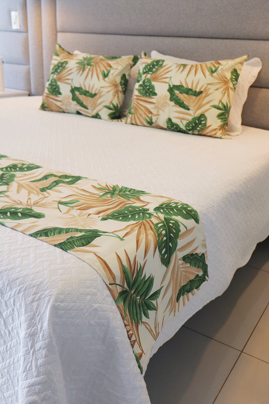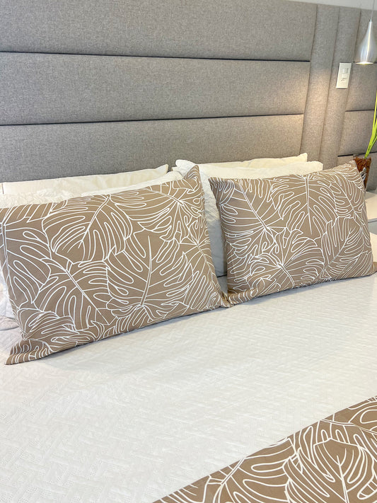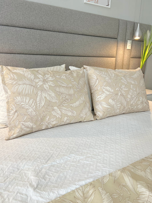 Kit Peseira + 2 Fronhas em Tecido Belize Folhas Costela de Adão Bege