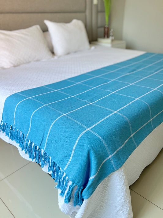 Peseira para Cama Algodão Grid Azul 1,80x2,20m
