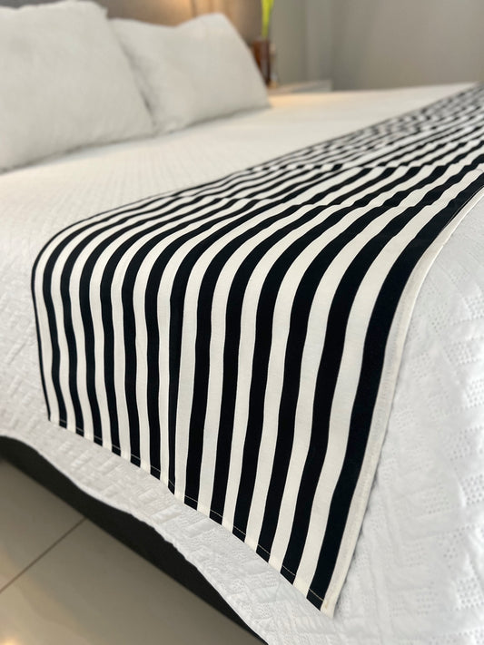 Peseira para Cama Algodão Listrada Preta e Cinza 1,80x2,20m