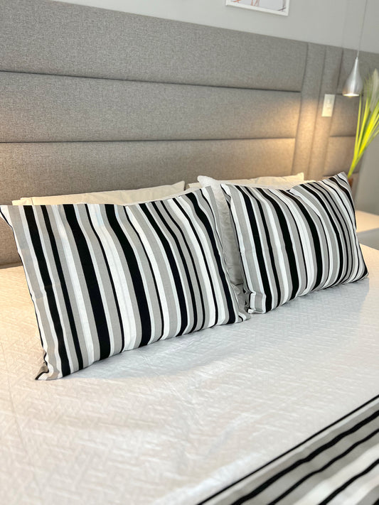 Kit Peseira + 2 Fronhas em Tecido Belize Listrado Preto e Cinza