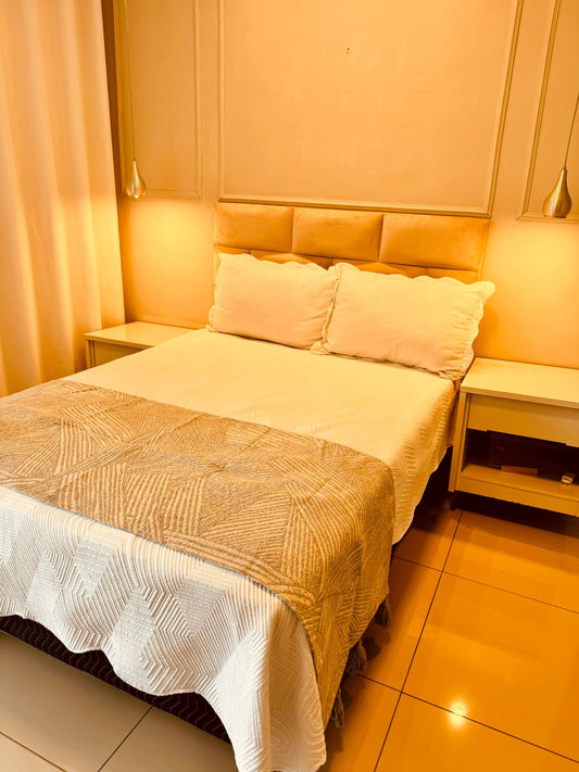 Peseira / Manta de Tricô Pompom + 2 capas de almofadas Lisa Marrom