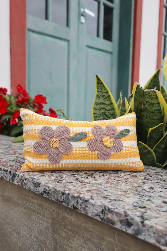 Peso de Porta Algodão Engomado Listrado Amarelo