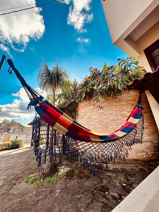 Rede de Descanso Simples Xadrez Vermelha, Amarela e Azul