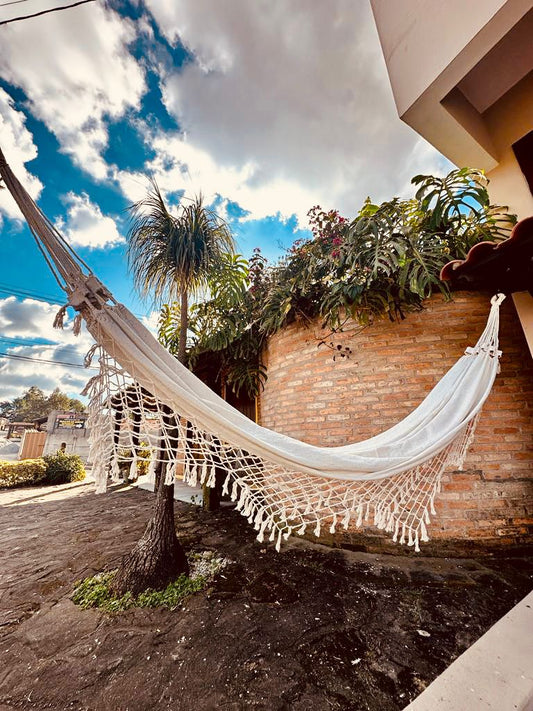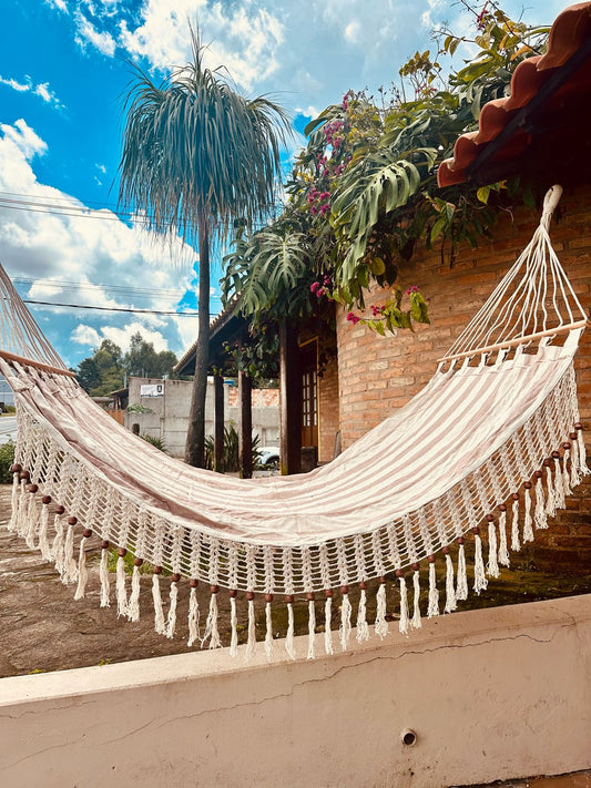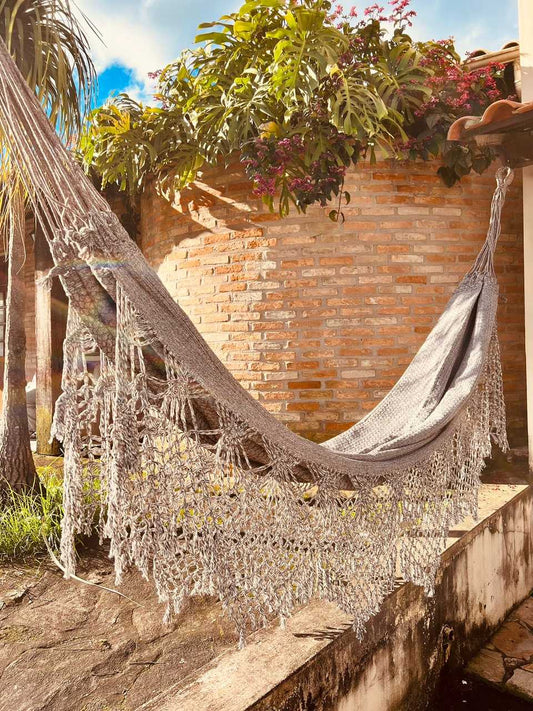 Rede De Descanso Casal Macramê Bucho De Boi Cru