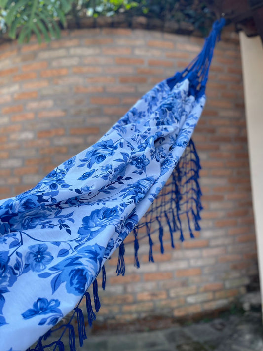 Rede de Algodão Forrada com Belize Semi Impermeável - Floral Azul