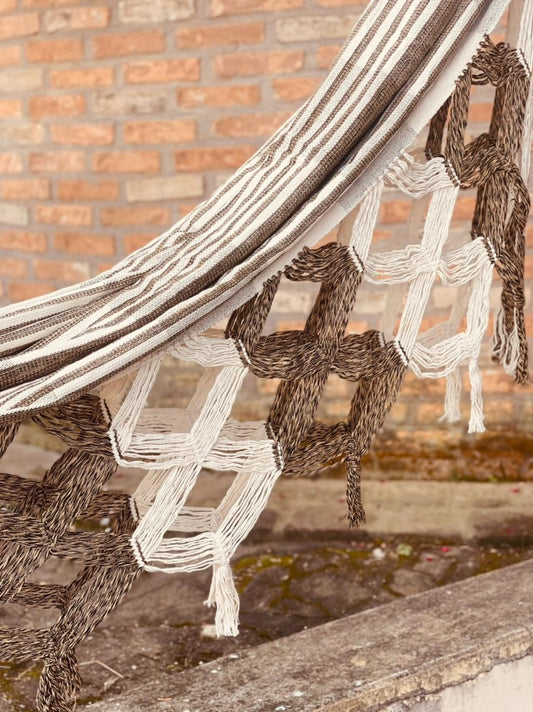 Rede De Descanso Casal Macramê Bucho De Boi Marrom Mescla