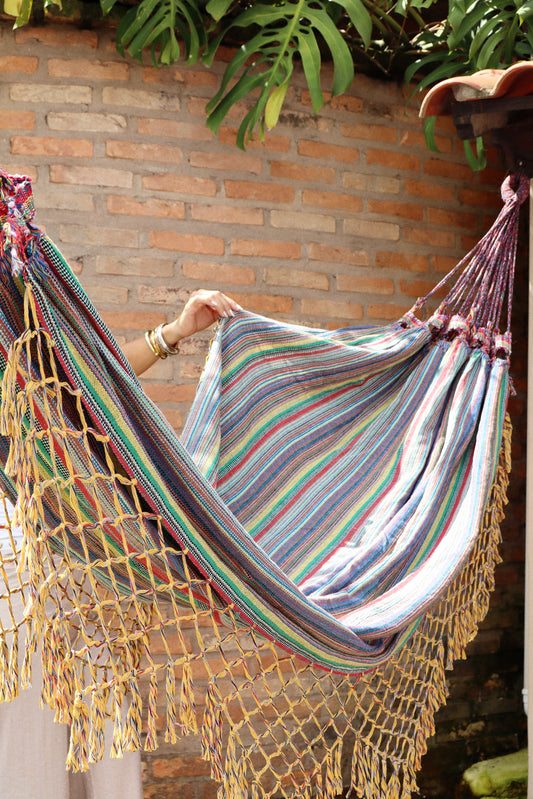 Rede De Descanso Casal Macramê Bucho De Boi Neon