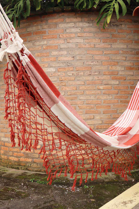 Rede De Descanso Luxo Lisa Vermelha Mesclada