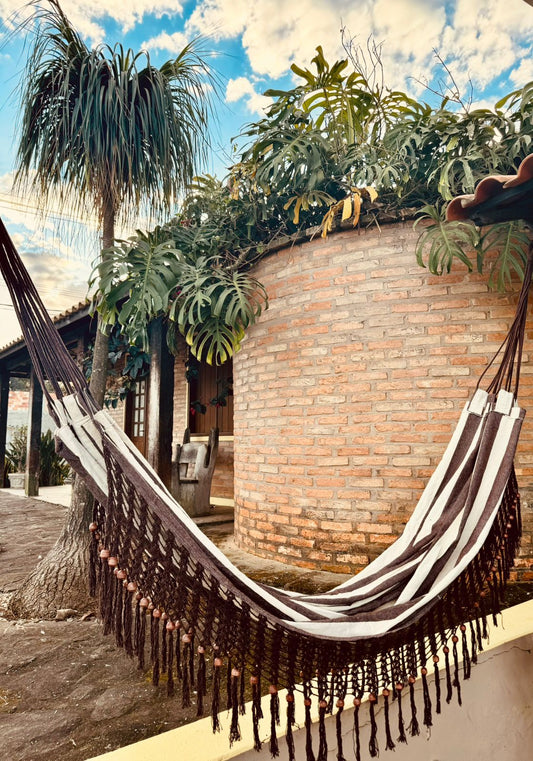 Rede Crochê e Bolinhas - Marrom Com Lista Cru