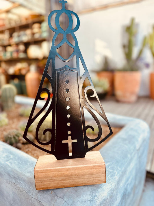 Pedestal Nossa Senhora Aparecida em Ferro com Base em Madeira G