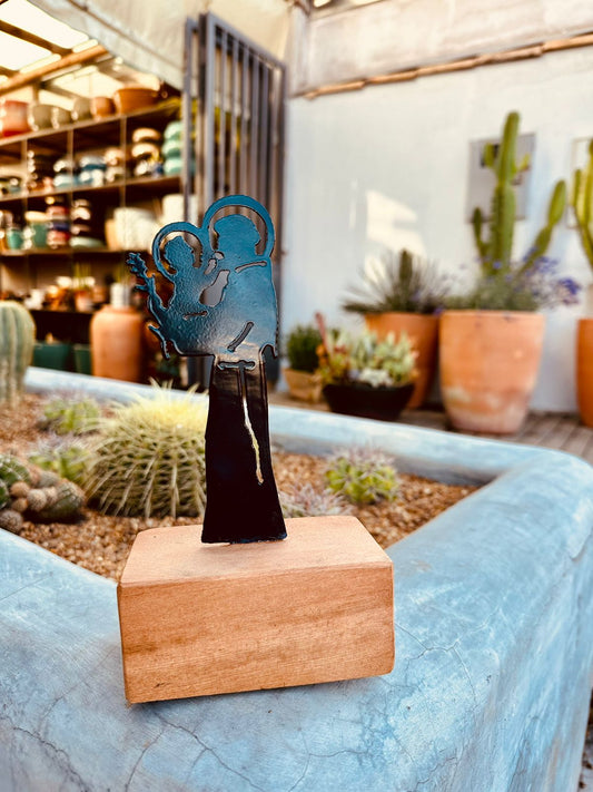 Pedestal Santo Antônio em Ferro com Base em Madeira
