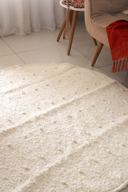 Tapete Algodão Puxadinho Redondo Pompom Cru 1,5m