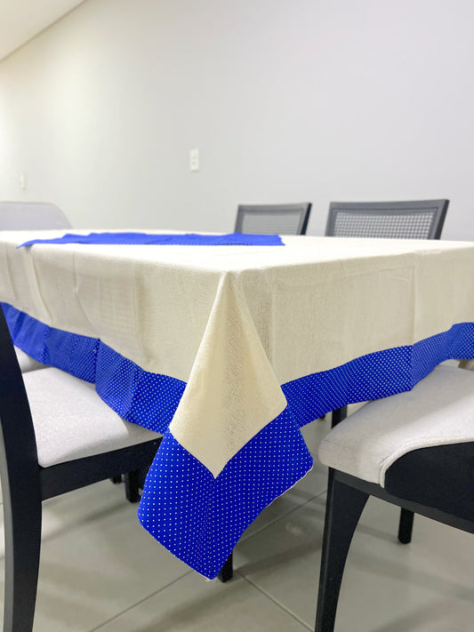 Toalha de Mesa com Barra de Tricoline Poá Azul com Composê 1,5mx2,2m