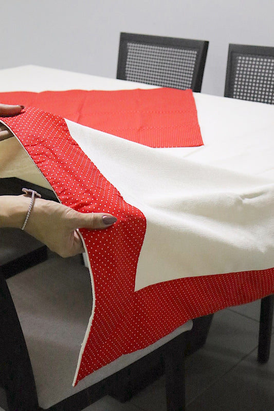 Toalha de Mesa com Barra de Tricoline Poá Vermelho com Composê 1,5mx2,2m