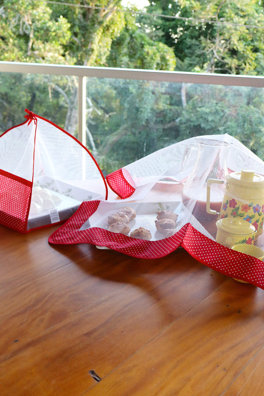 Kit Tule Cobre Alimentos 72x72cm + Cobre Bolo 30x30cm Poá Vermelho