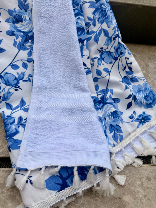 Toalha Canga Dupla Face com Tecido Impermeável Belize Floral Azul