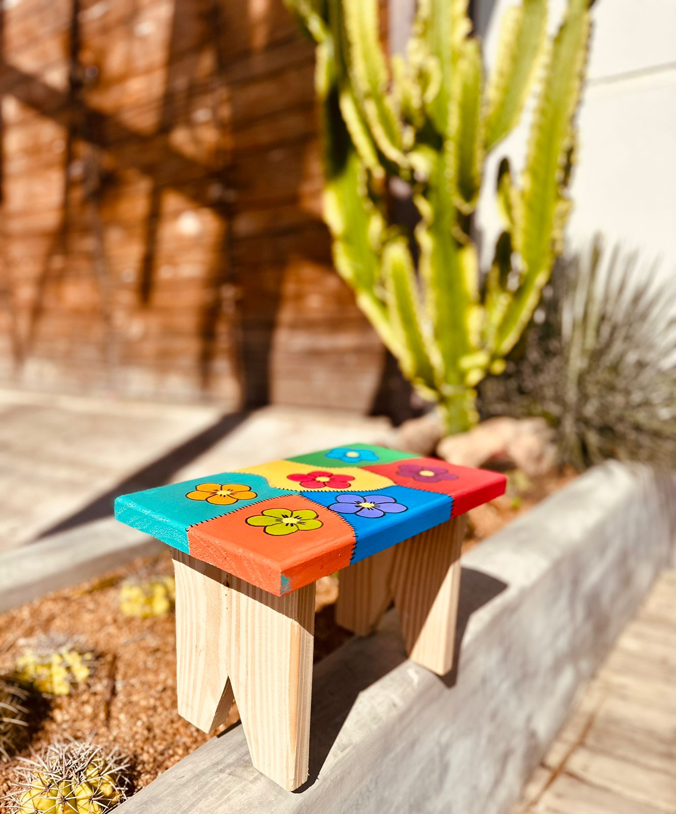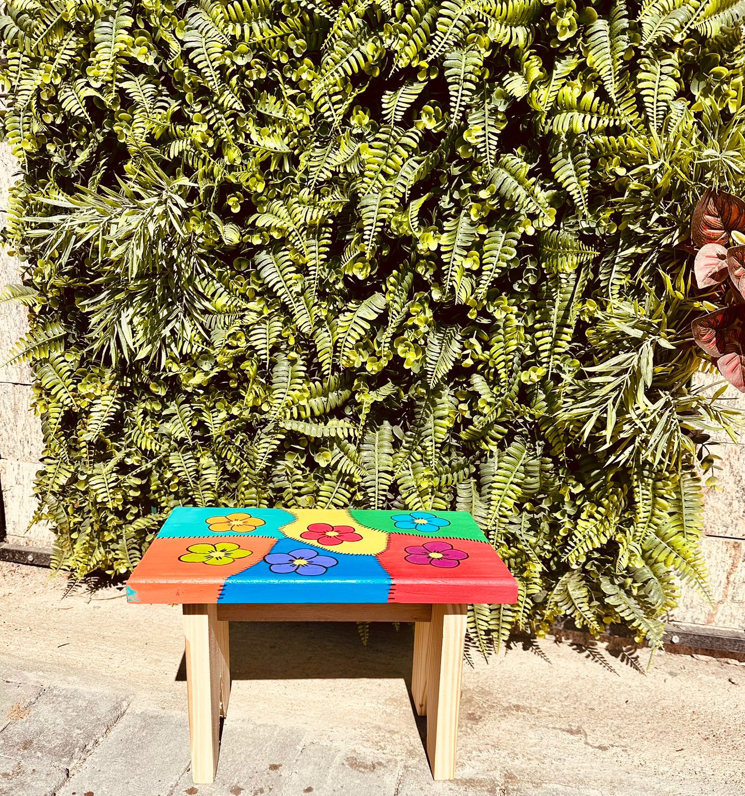 Banco/Banquinho Madeira Pintado Patchwork