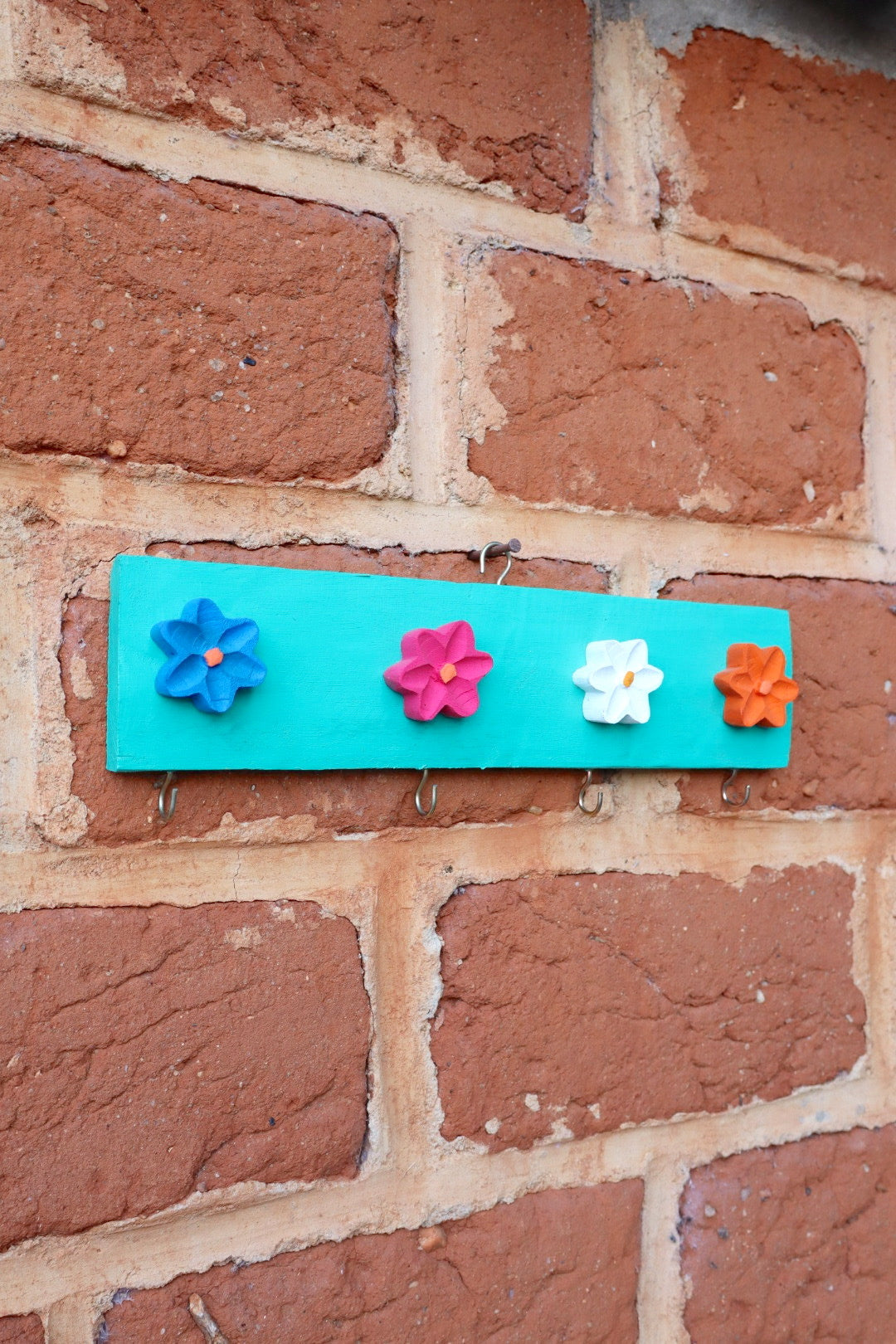 Cabide de Madeira Tifanny com 4 Ganchos Flor Colorida