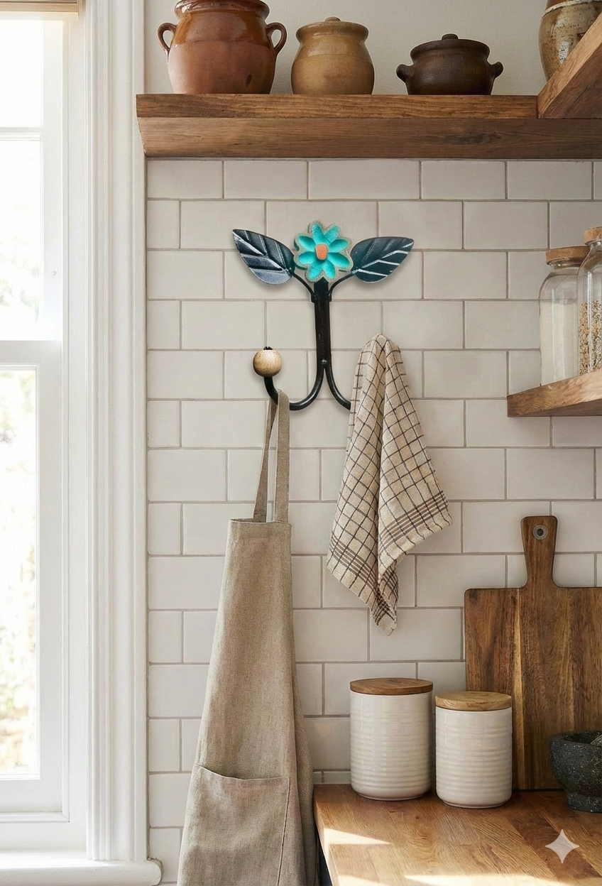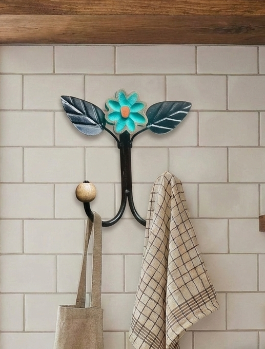 Cabide Ferro com Flor de Madeira Verde