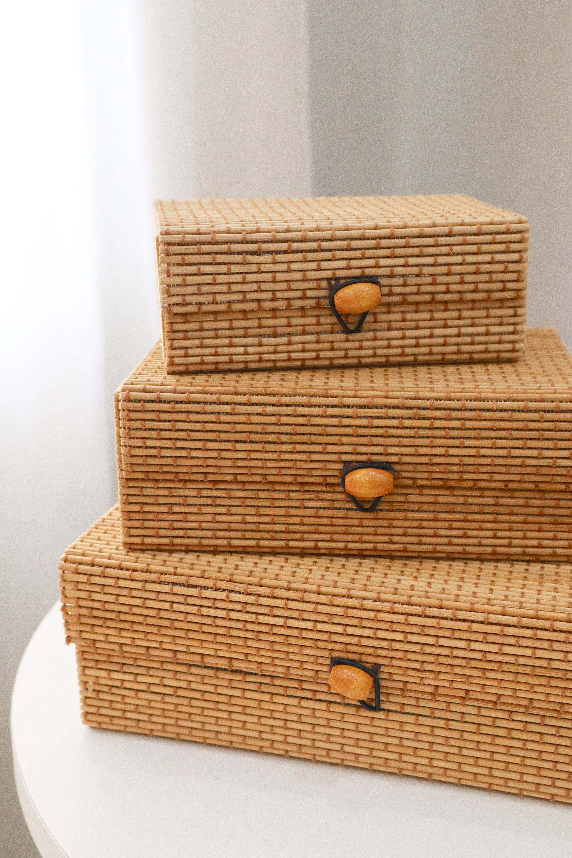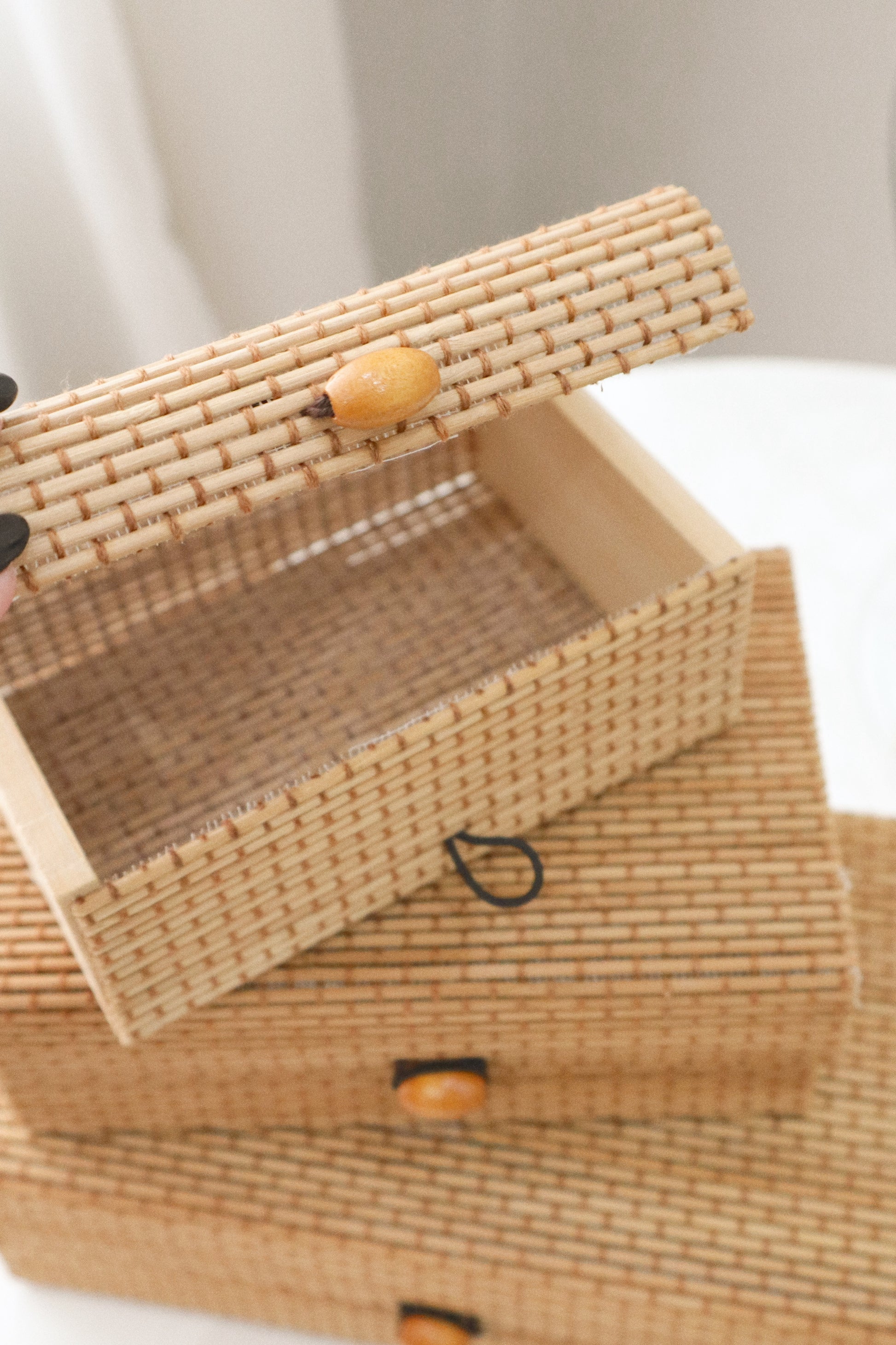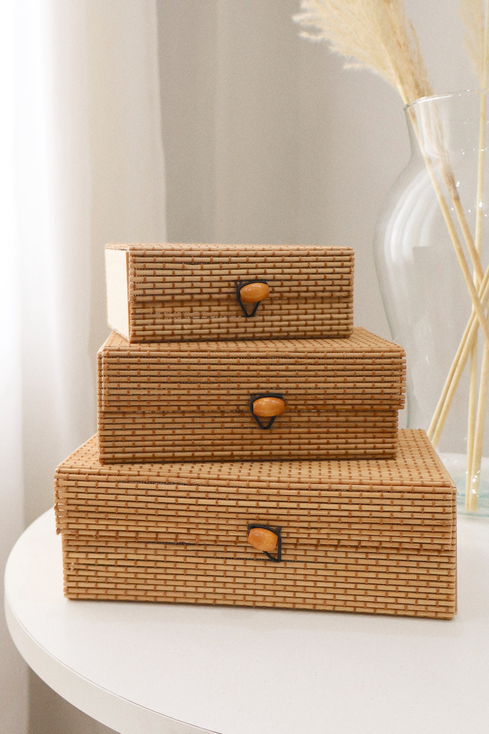 Uma solução elegante e prática para organizar seus pertences com beleza e funcionalidade. Feitas de bambu de alta qualidade, essas caixas são duráveis e sustentáveis, adicionando um toque natural ao seu ambiente. Com três tamanhos diferentes, você poderá armazenar uma variedade de itens, desde joias e acessórios até documentos e objetos do dia a dia.