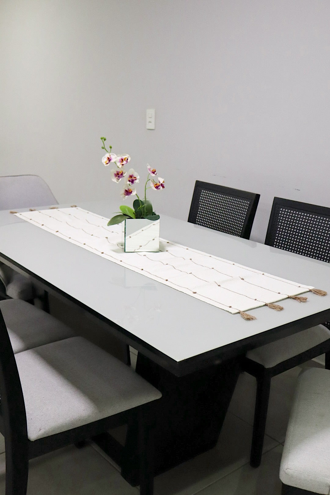 Transforme suas refeições em um verdadeiro evento com o caminho de mesa em algodão. Com um design sofisticado e elegante, este conjunto é perfeito para quem busca unir beleza e funcionalidade na hora de decorar a mesa.