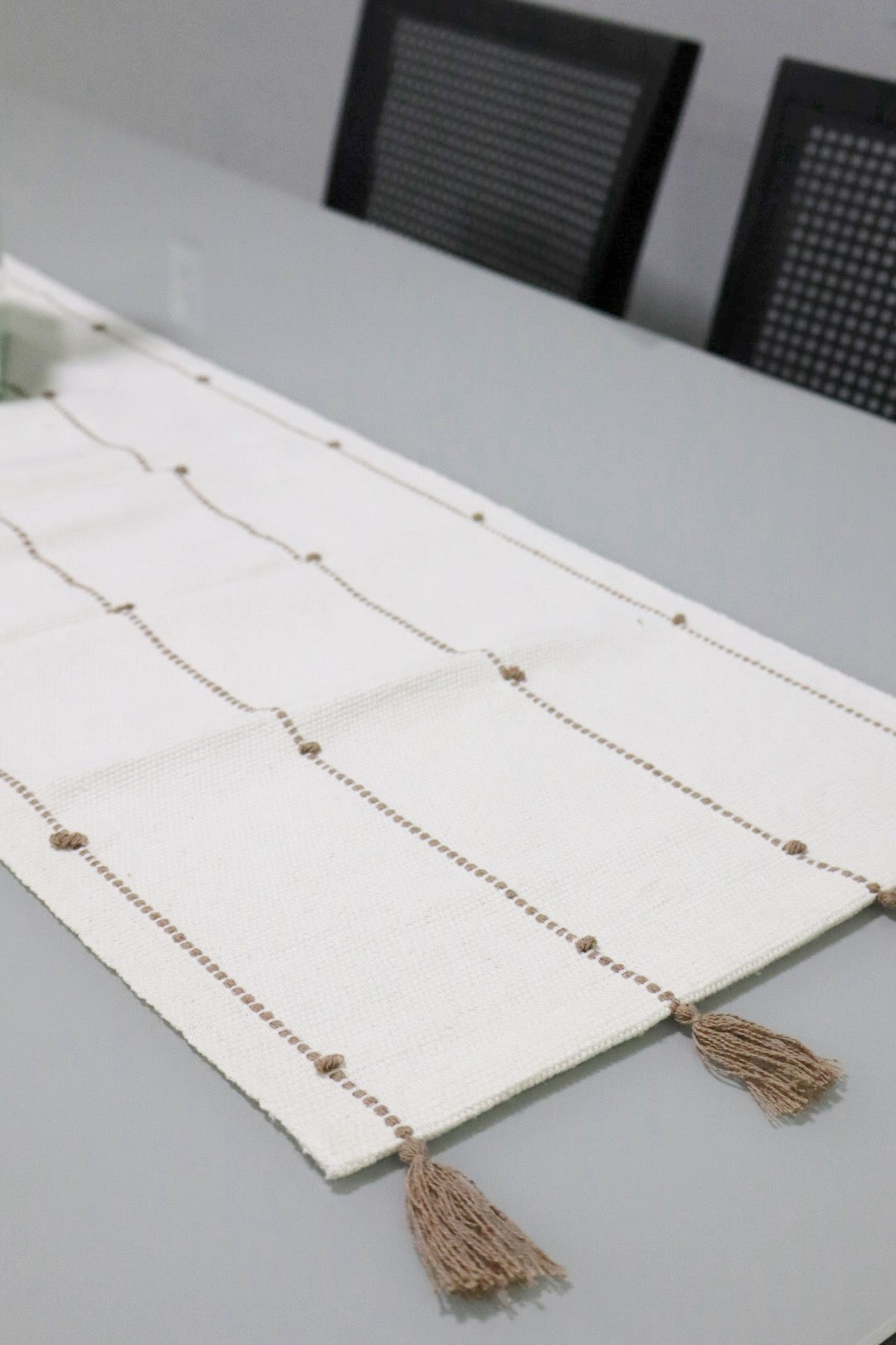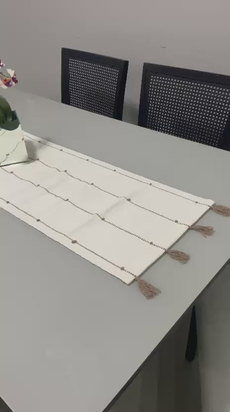 Caminho de Mesa Algodão com Pompom Bege