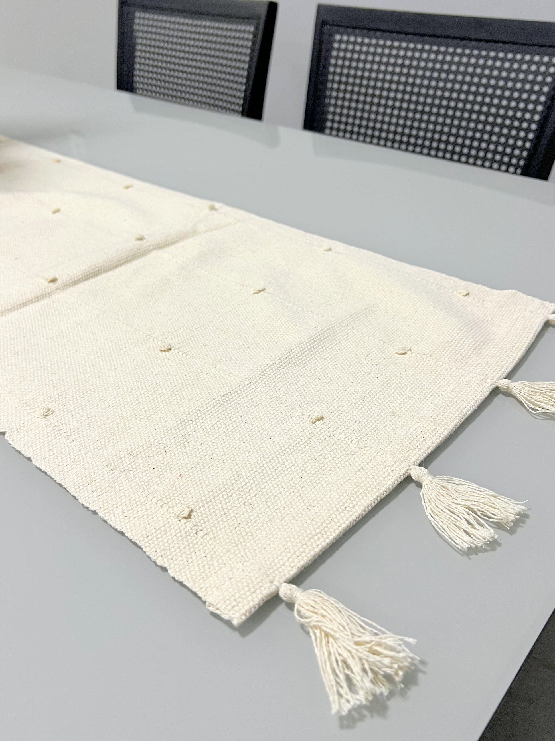 Caminho de Mesa Algodão com Pompom Cru