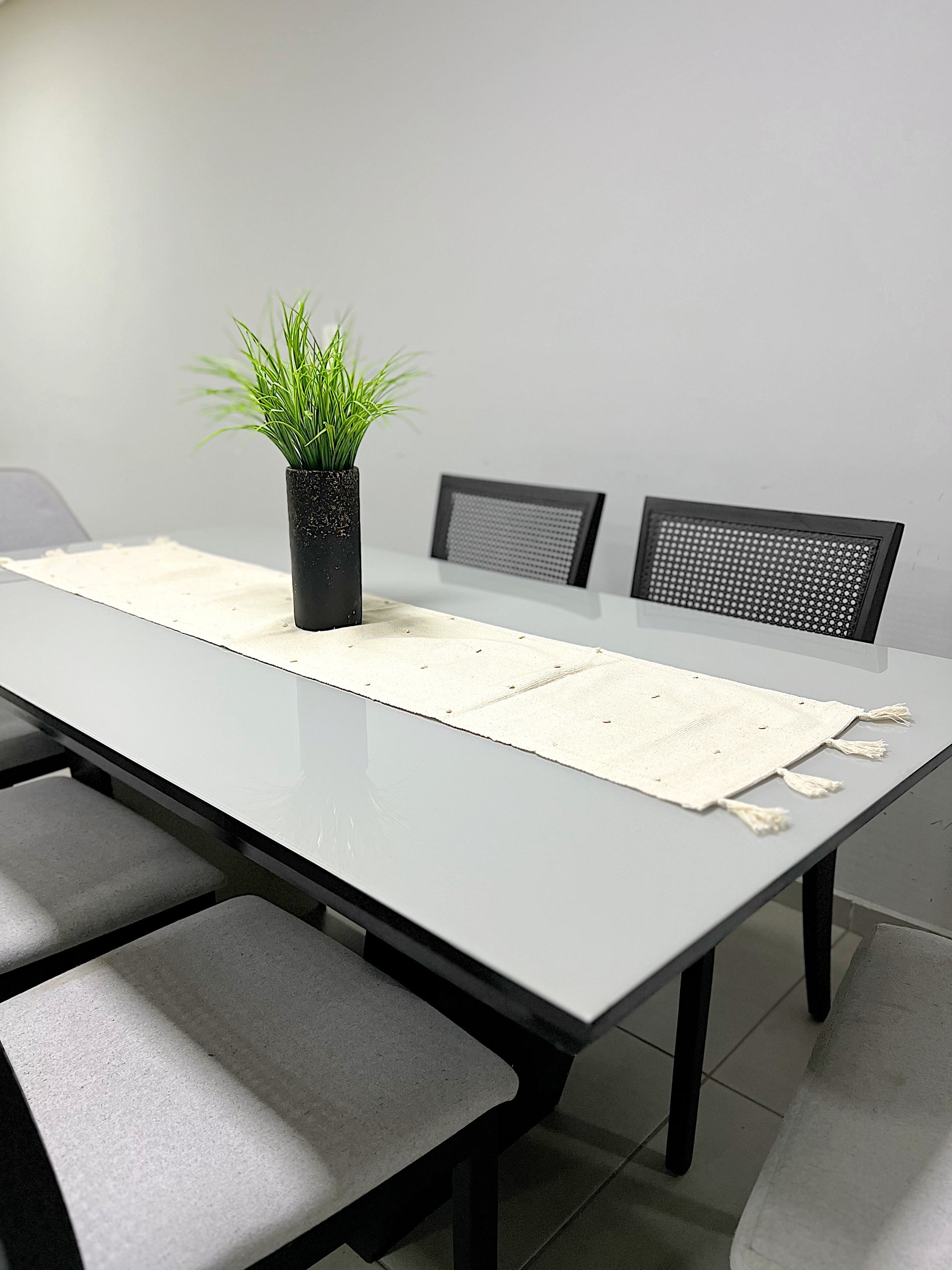 Transforme suas refeições em um verdadeiro evento com o caminho de mesa em algodão. Com um design sofisticado e elegante, este conjunto é perfeito para quem busca unir beleza e funcionalidade na hora de decorar a mesa.