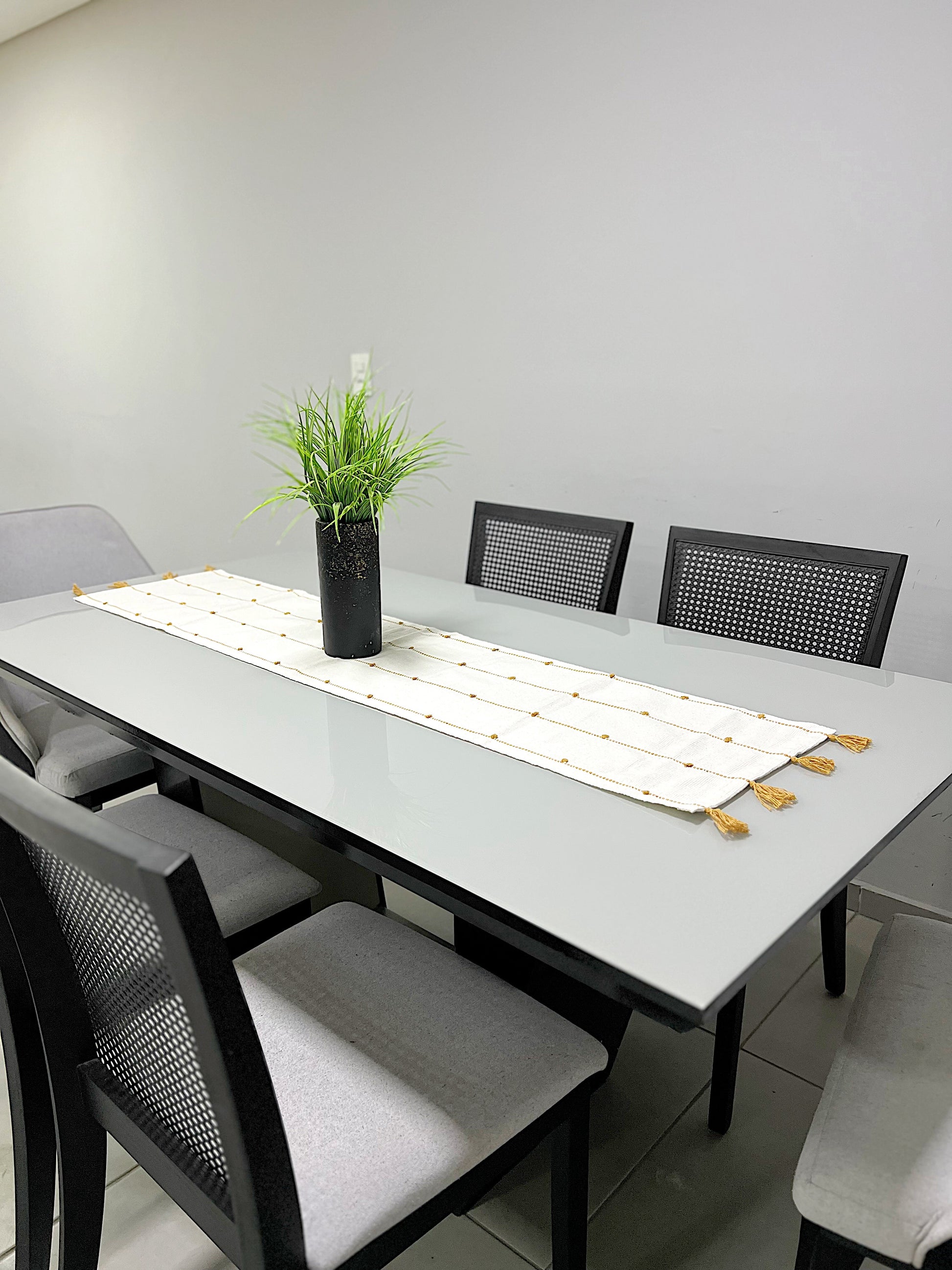 Transforme suas refeições em um verdadeiro evento com o caminho de mesa em algodão. Com um design sofisticado e elegante, este conjunto é perfeito para quem busca unir beleza e funcionalidade na hora de decorar a mesa.