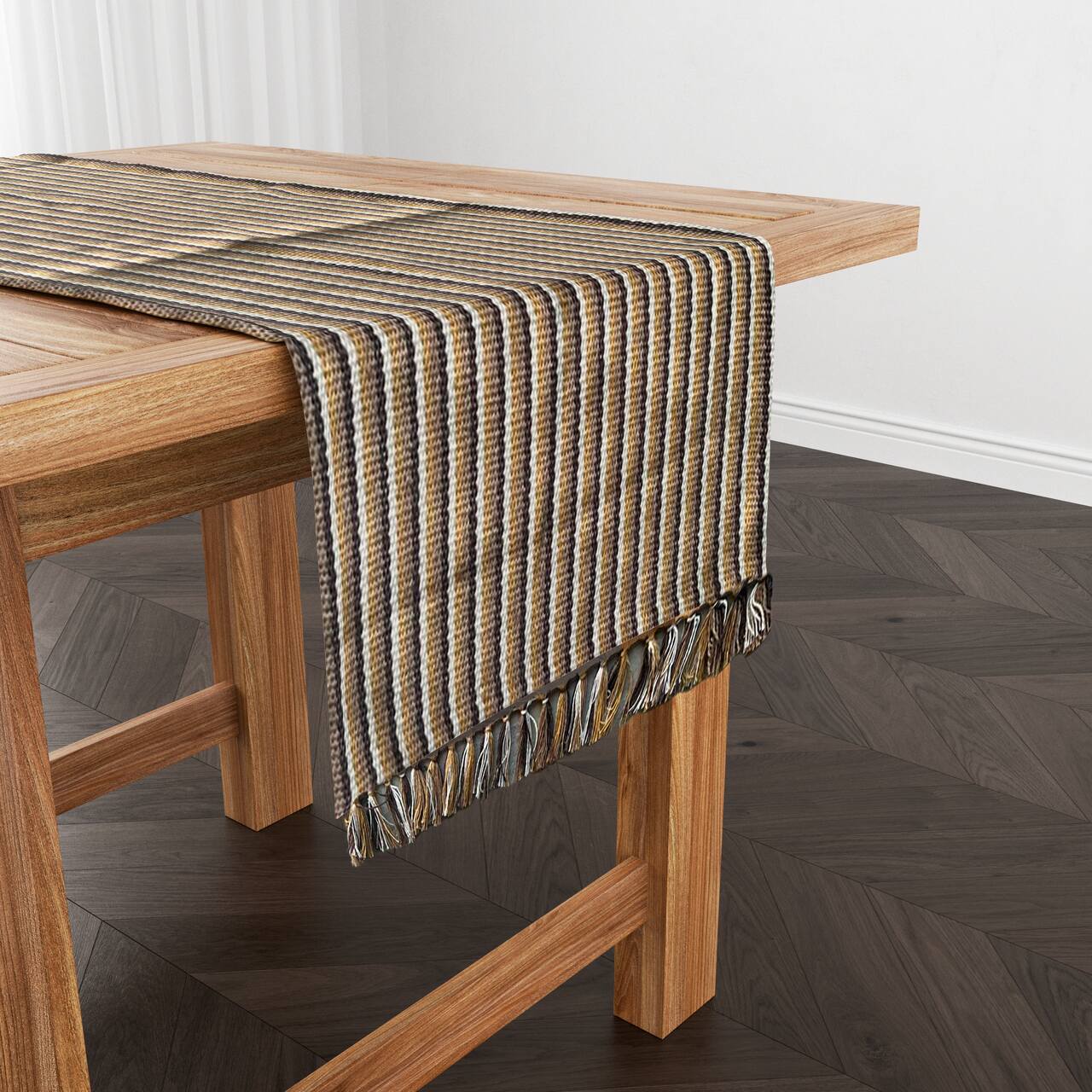 Caminho de Mesa Algodão Listrado Mostarda e Marrom 1,5m