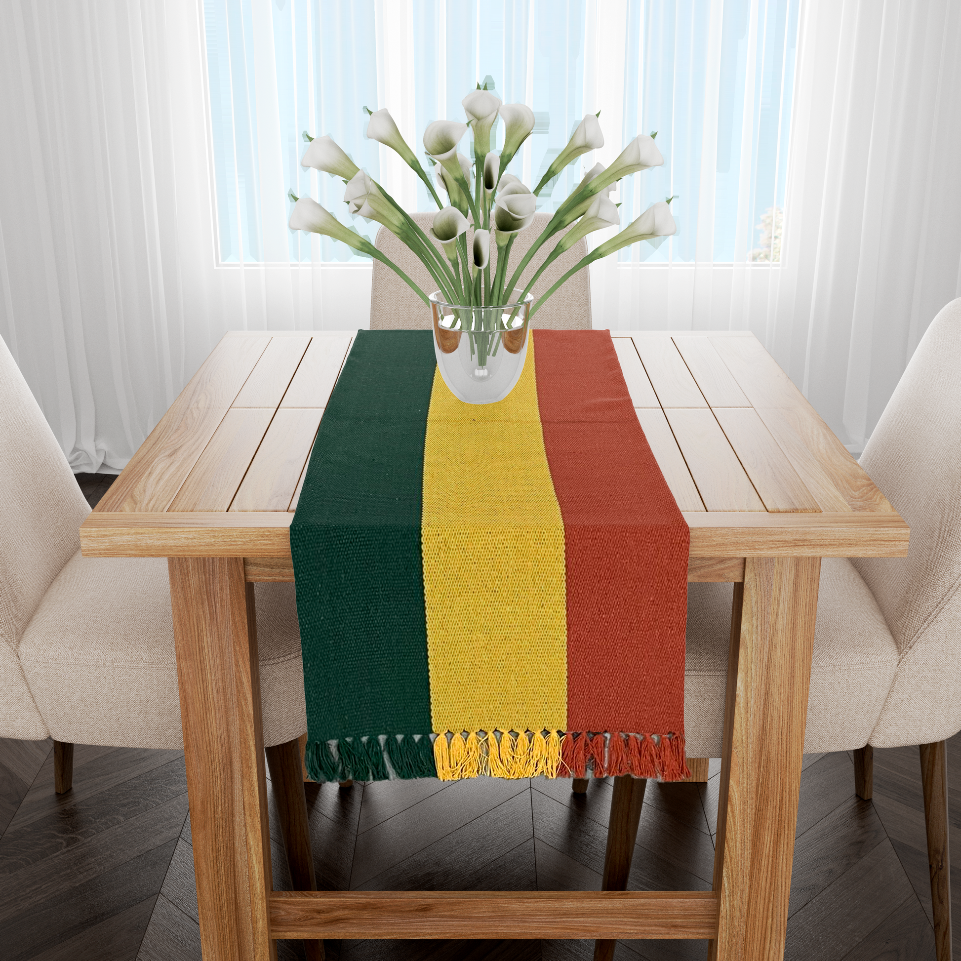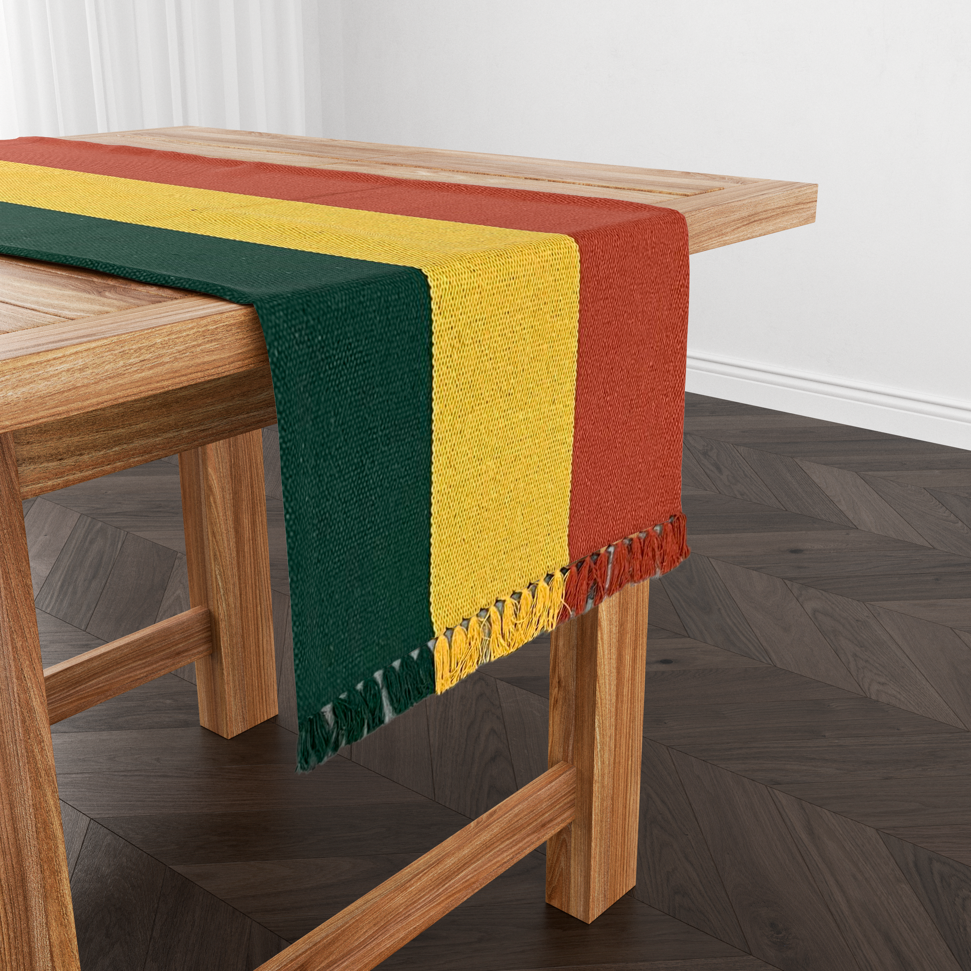 Caminho de Mesa Algodão Verde, Mostarda e Terracota 1,0m