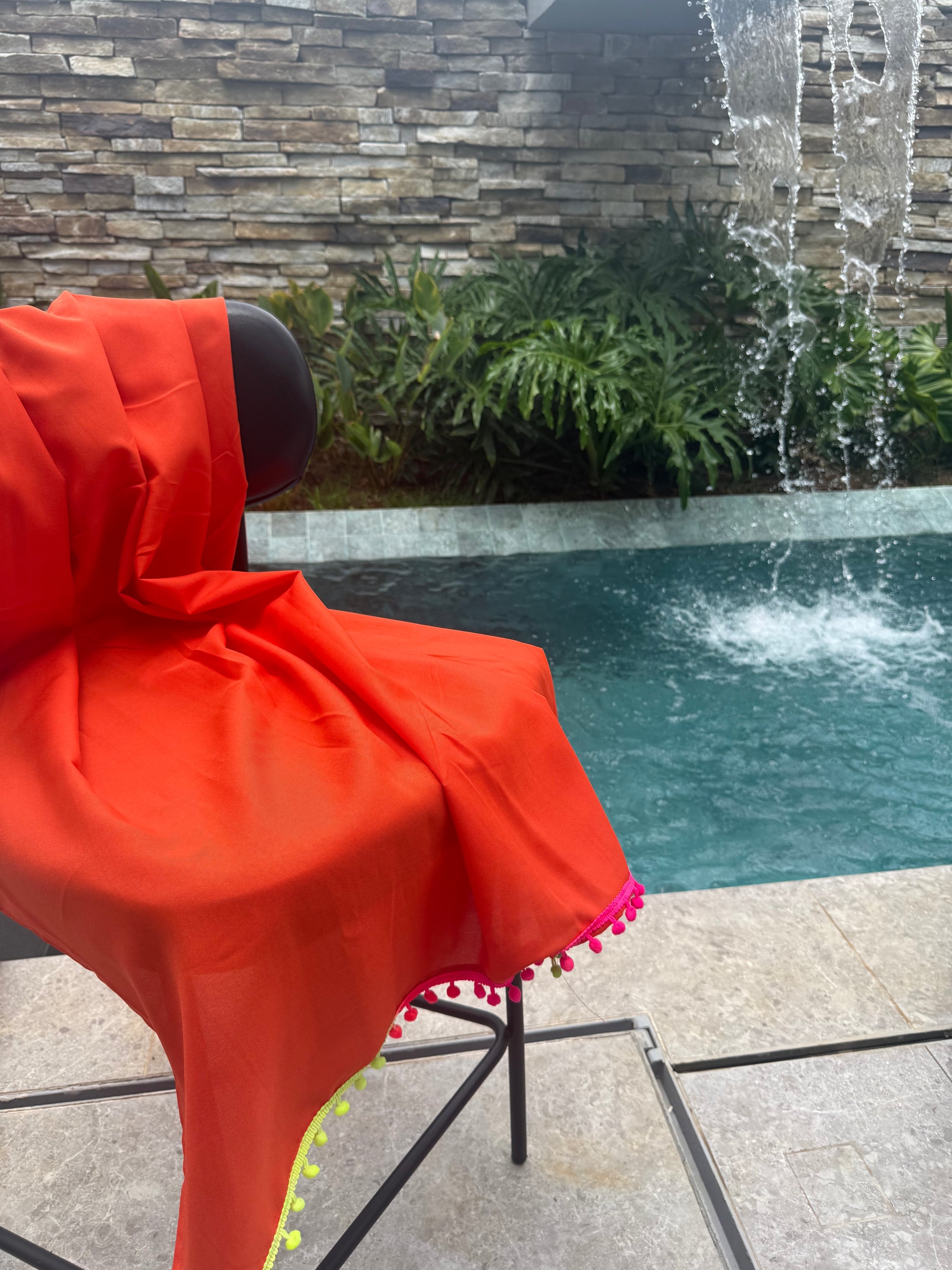 A canga com pompom é a nova tendência para a saída de praia, além de estilosas e modernas, são muito úteis para cobrir o corpo durante a caminhada até a praia! O tecido é de ótima qualidade para dar ficar mais confortável para o seu uso!
