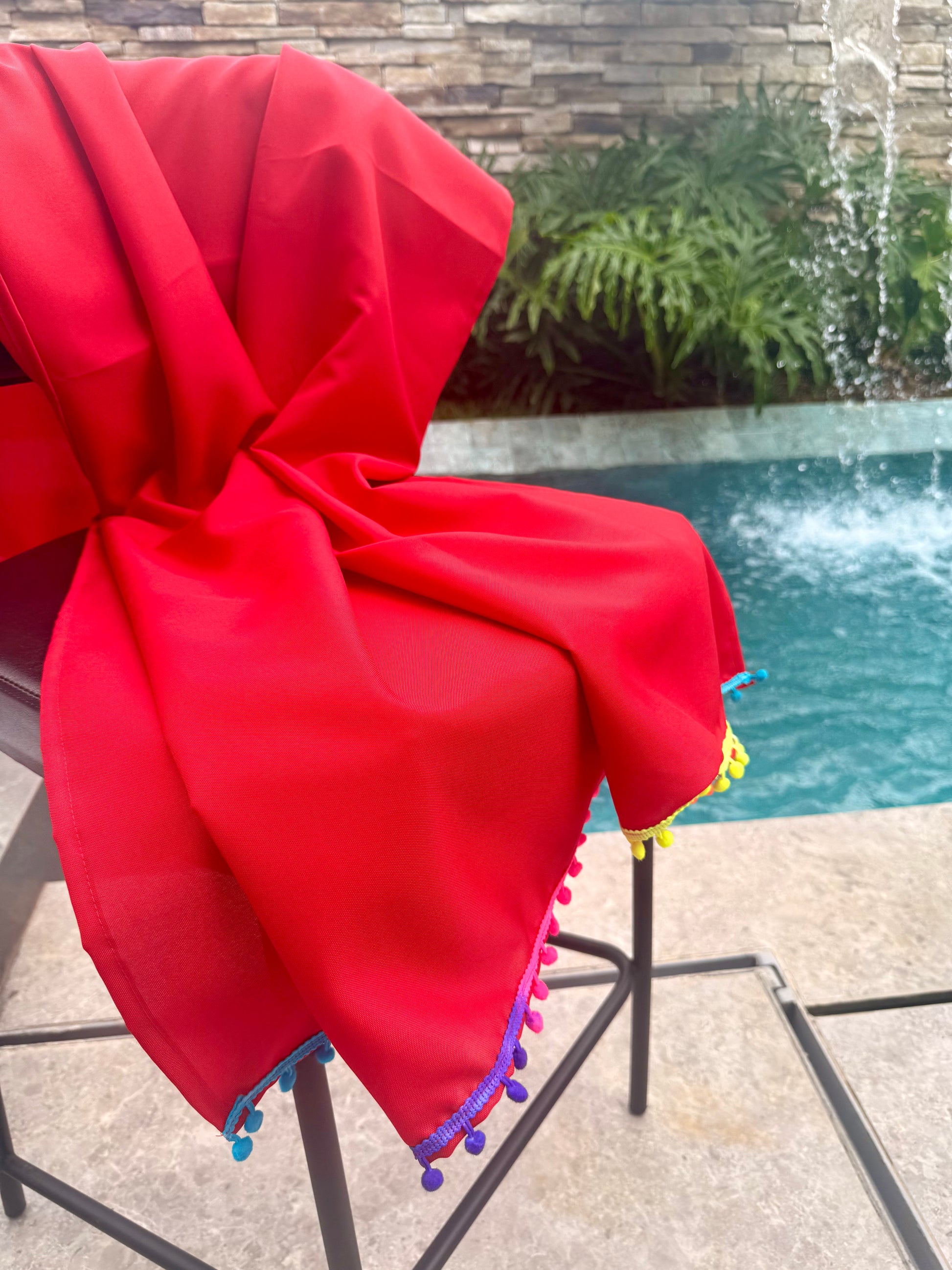 Canga Saída de Praia Vermelha com Pompom Colorido
