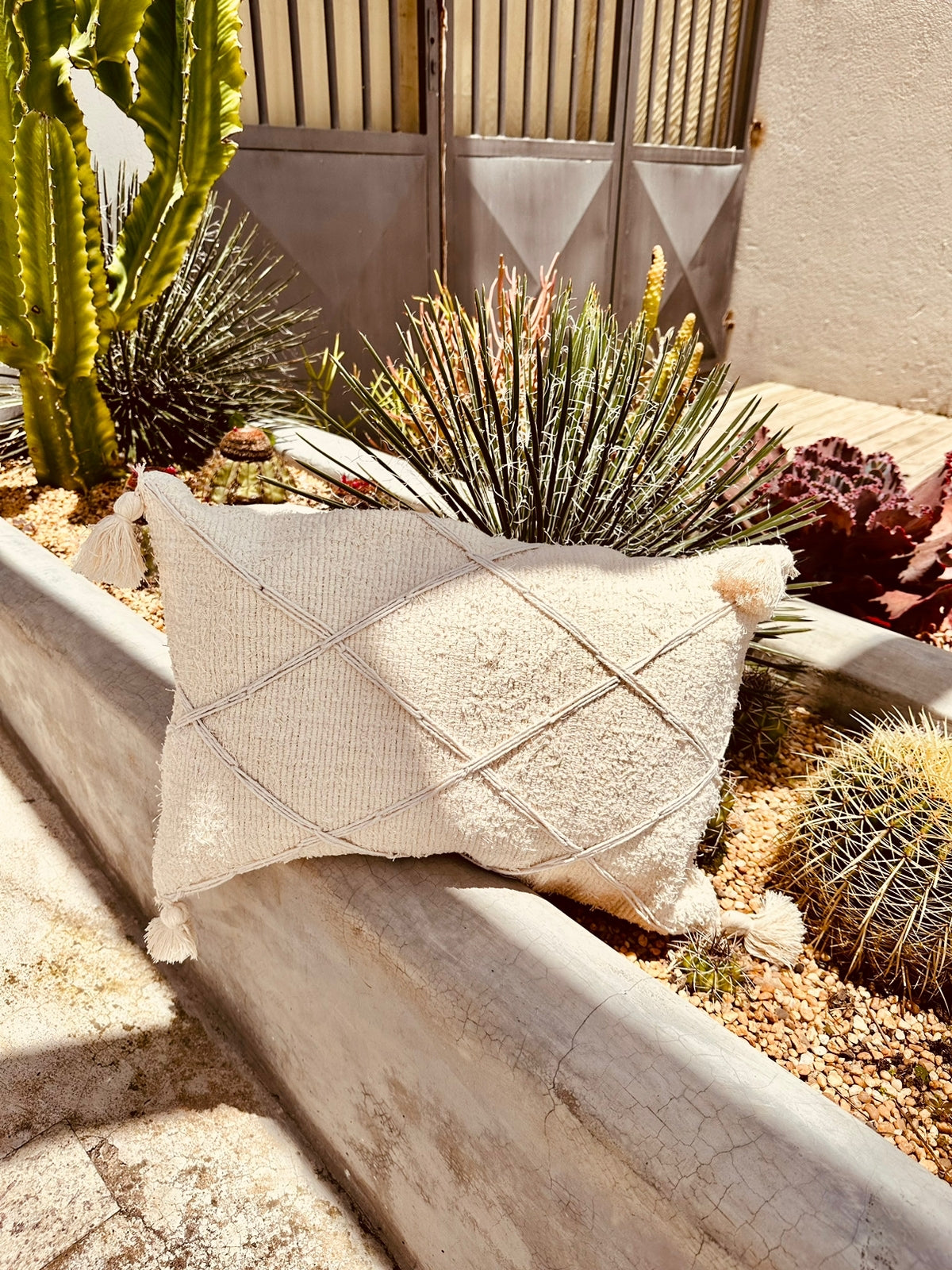 Capa de Almofada Algodão Baguete Bordada Geométrica Cru 30x50cm