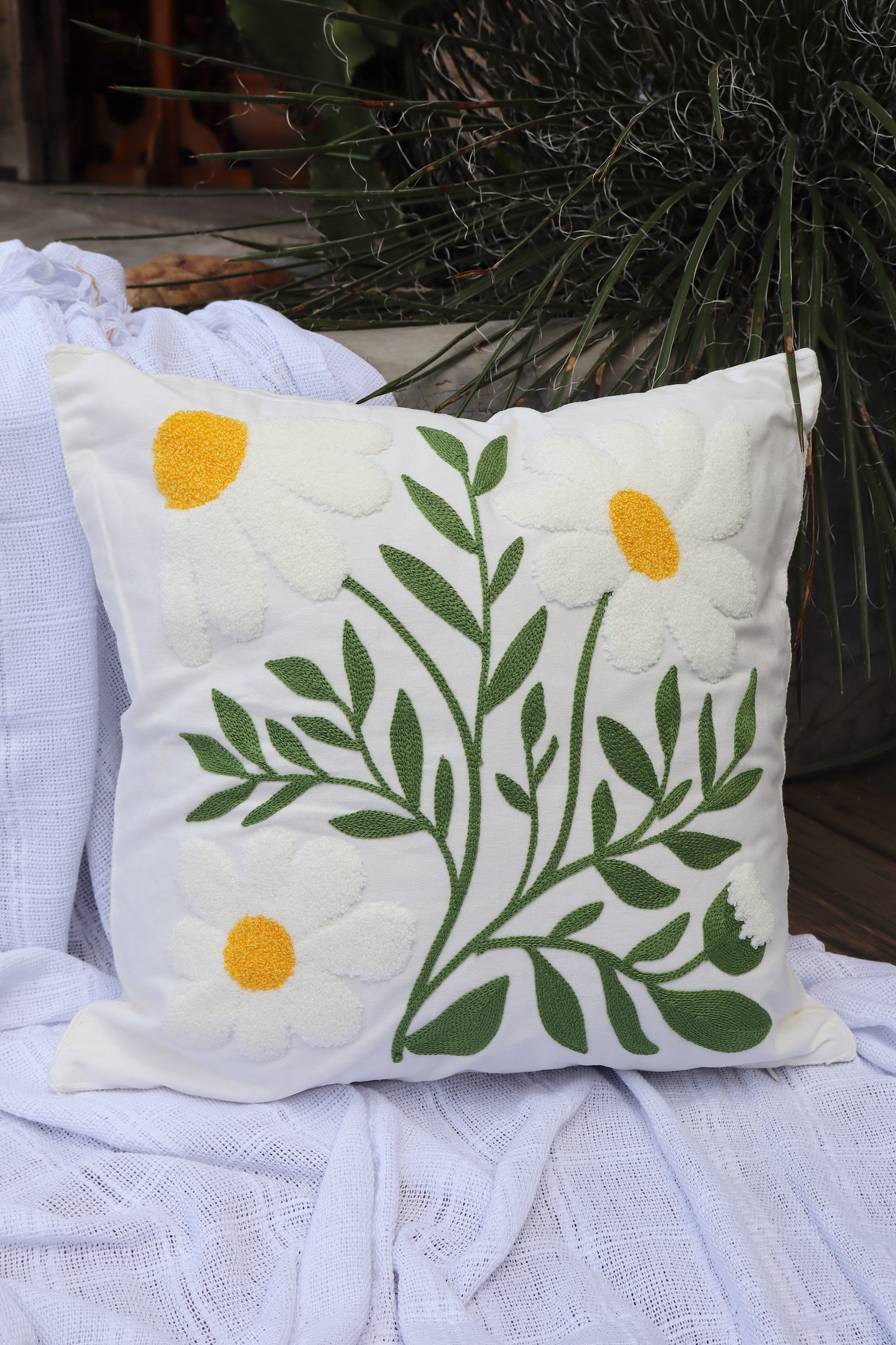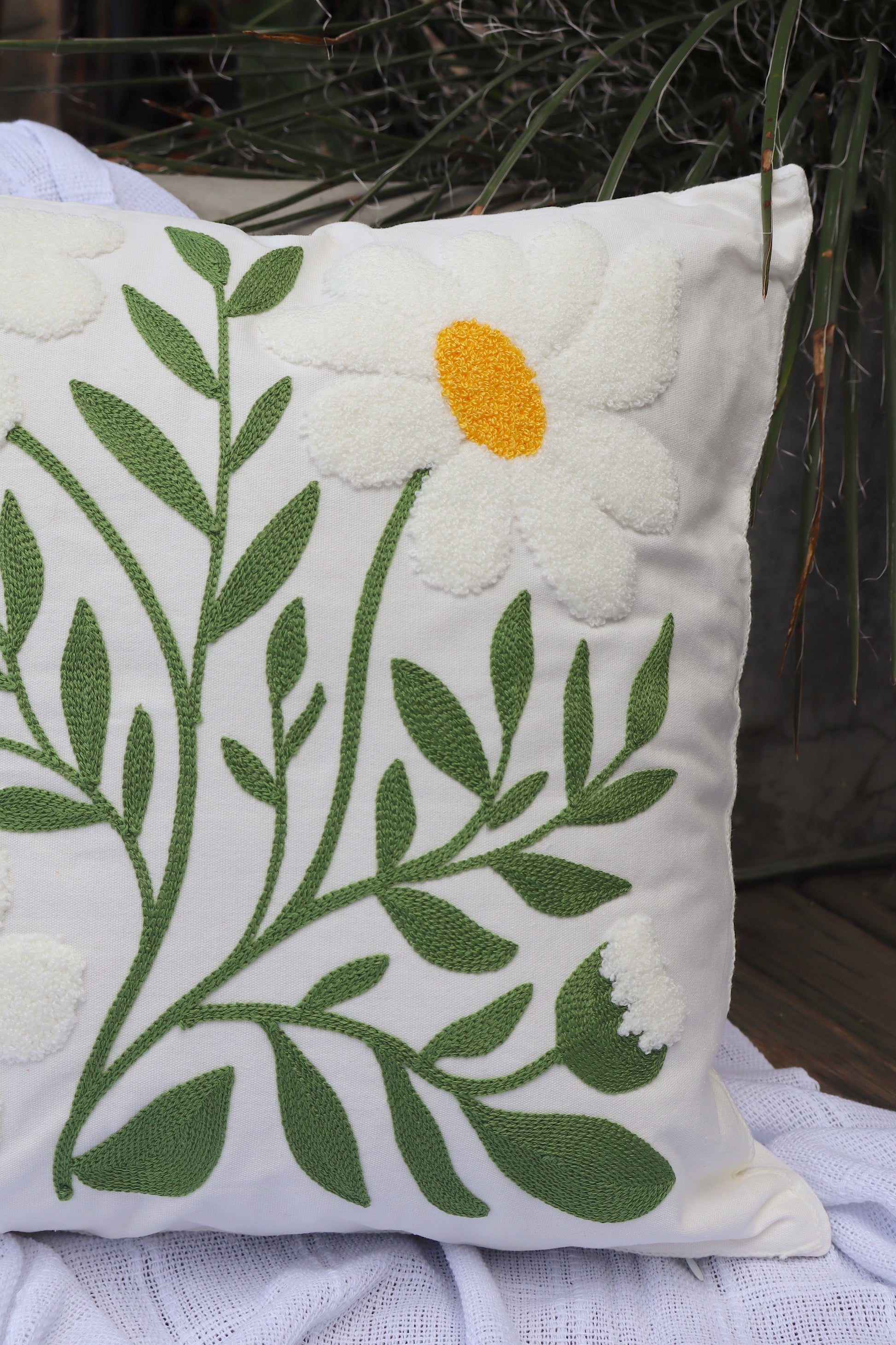 Capa de Almofada Bordada em Linho 45x45 Flores EST03