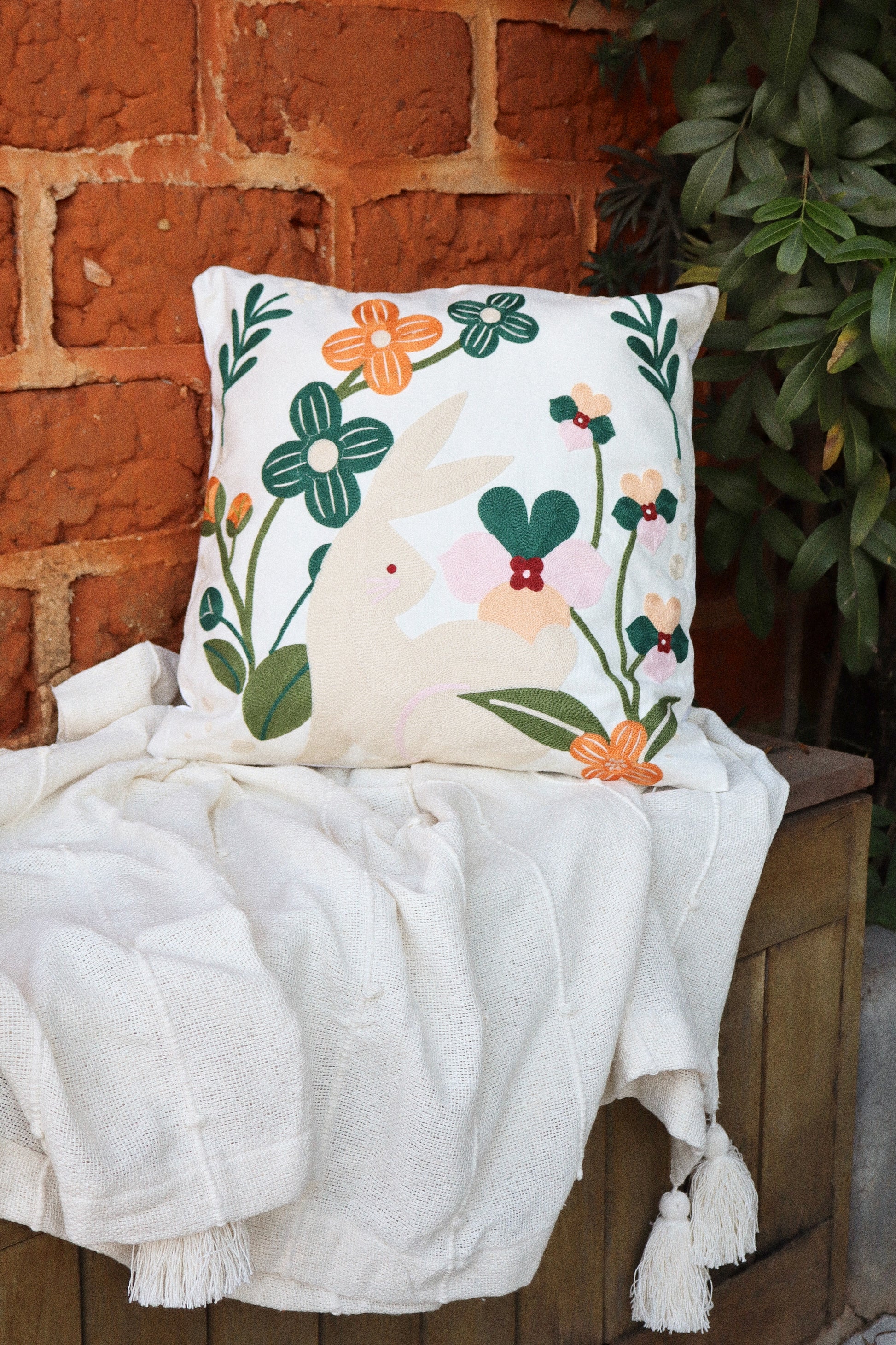 Capa de Almofada Bordada em Linho 45x45 Páscoa Coelho Tifanny