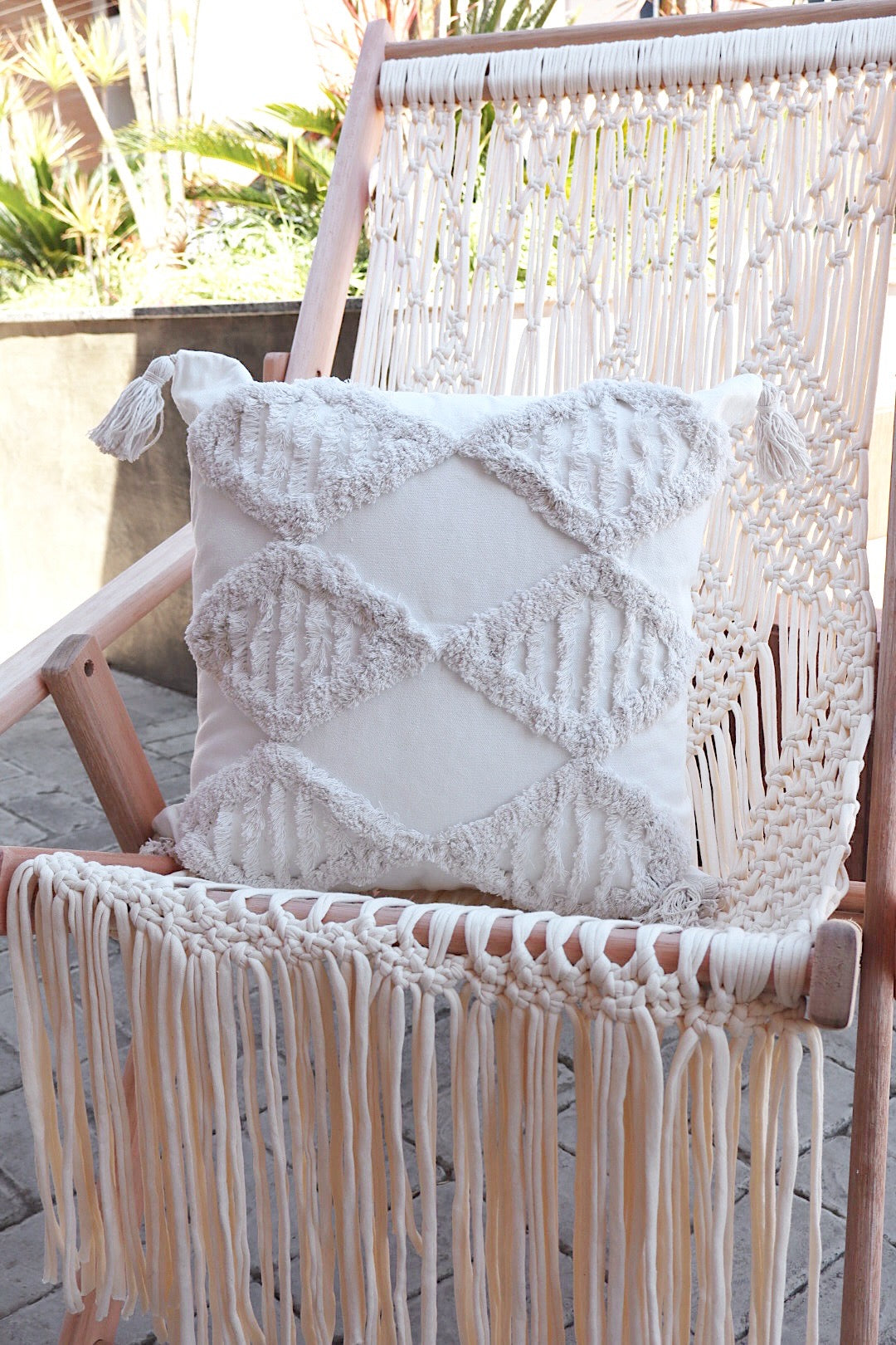 Capa de Almofada Bordada em Linho Tufada Boho 45x45 EST14