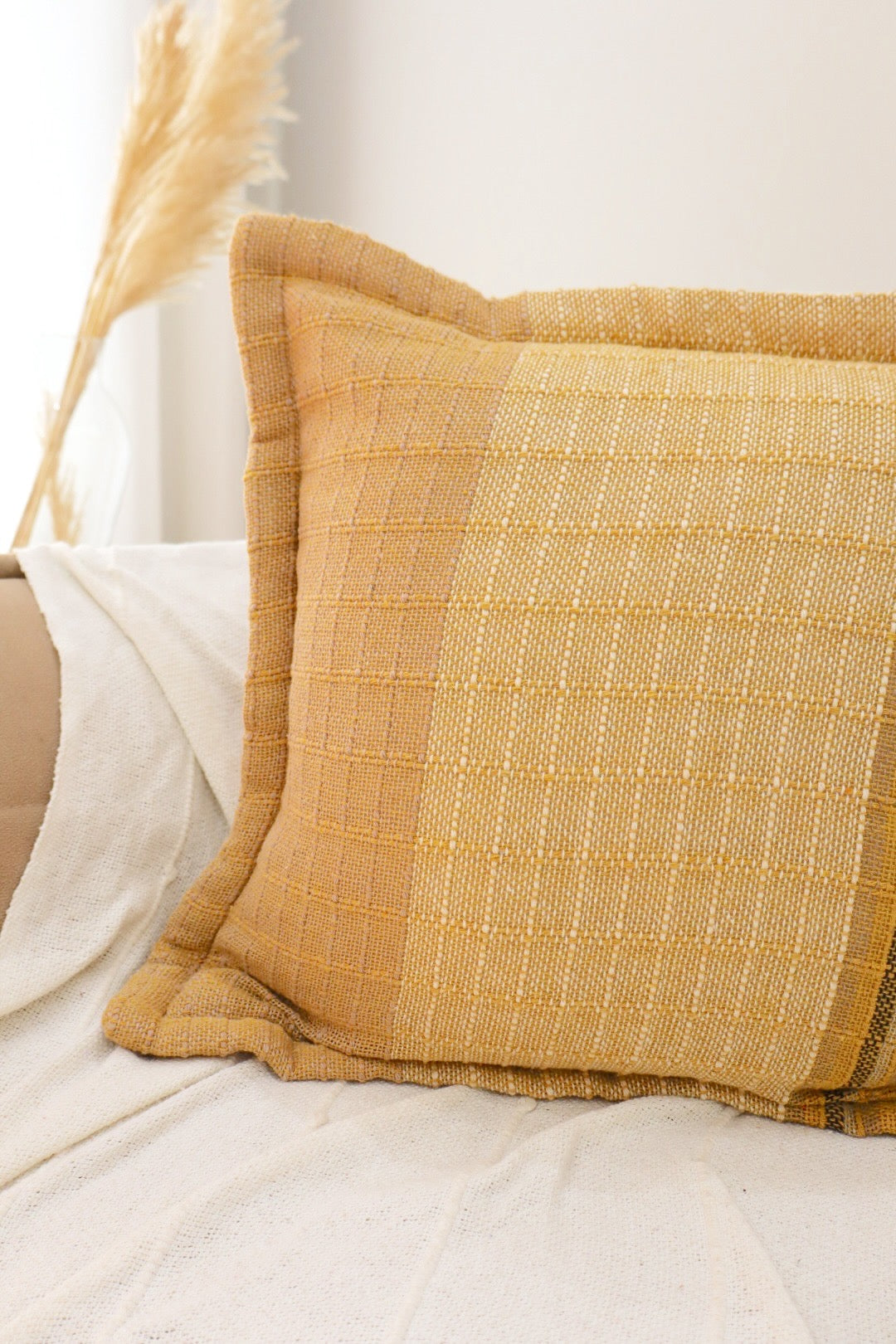 Capa de Almofada Decorativa em Algodão Amarela Listrada 45x45