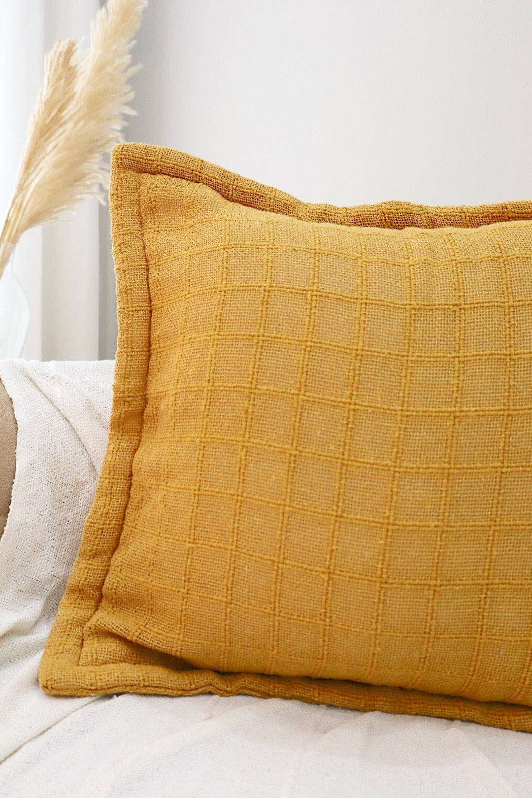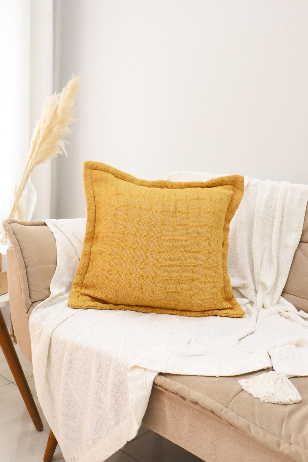Capa de Almofada Decorativa em Algodão Lisa Mostarda 45x45