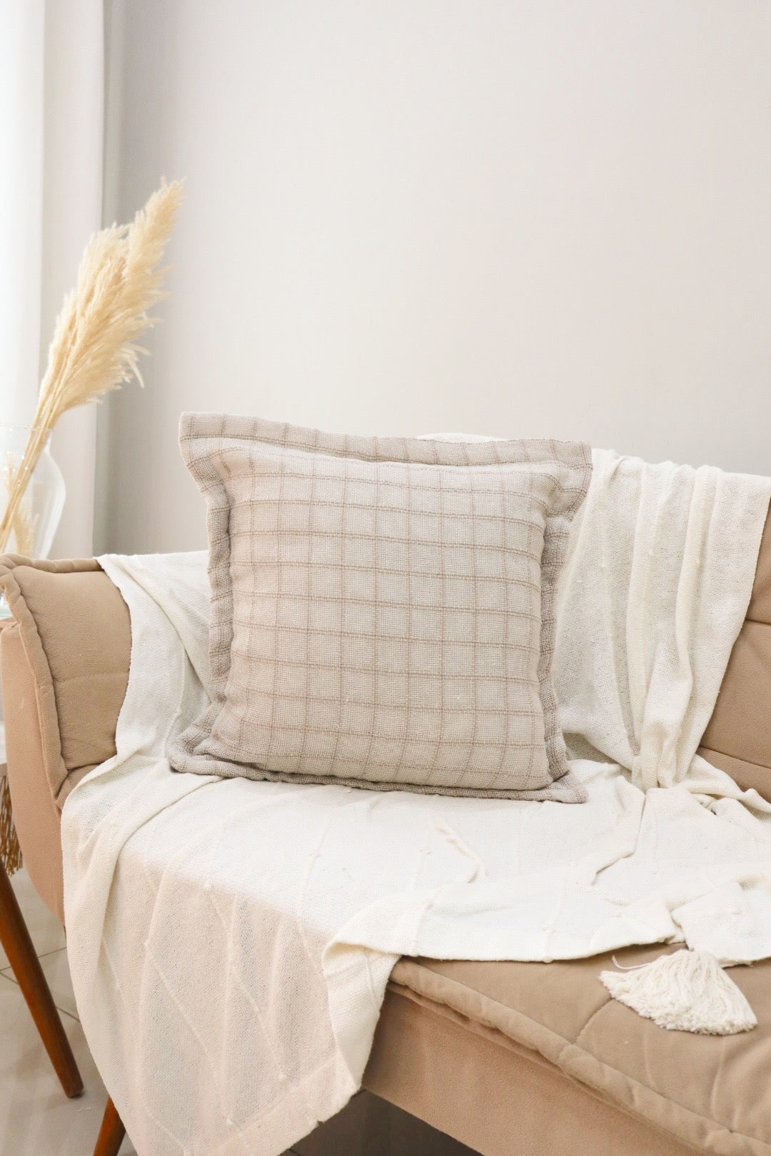 Capa de Almofada Decorativa em Algodão Lisa Nude 45x45