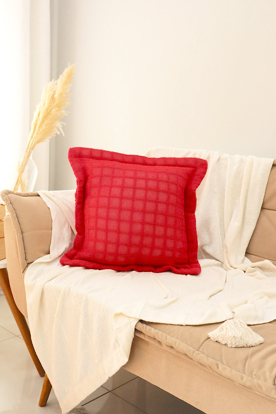Capa de Almofada Decorativa em Algodão Lisa Vermelha 45x45